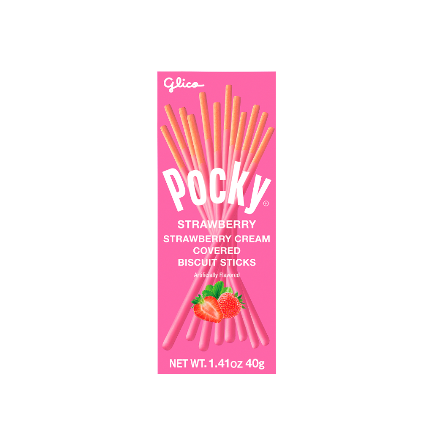 ป๊อกกี้สตรอว์เบอร์รี่เคลือบครีม ขนาด 1.59 ออนซ์ 45 กรัม บรรจุ 10 กล่อง ต่อกล่องใหญ่ 12 กล่อง สำหรับผู้ประกอบการตู้จำหน่ายสินค้าอัตโนมัติ