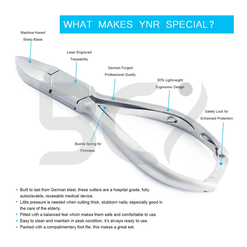 ชุดเครื่องมือแพทย์สำหรับโรคเท้า 5 ชิ้น พร้อมที่ตัดเล็บ ตะไบ ใบมีดผ่าตัด และด้ามจับ - ได้รับการรับรองมาตรฐาน CE ISO13485