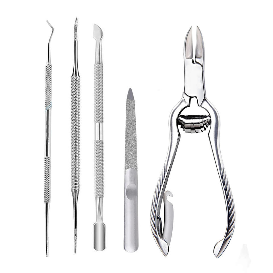 ชุดเครื่องมือดูแลเท้าสำหรับนักกายภาพบำบัดเท้า ประกอบด้วยที่ตัดเล็บเท้า ที่ตะไบเล็บหนา และอุปกรณ์ตรวจเล็บเท้า ทำจากสแตนเลส