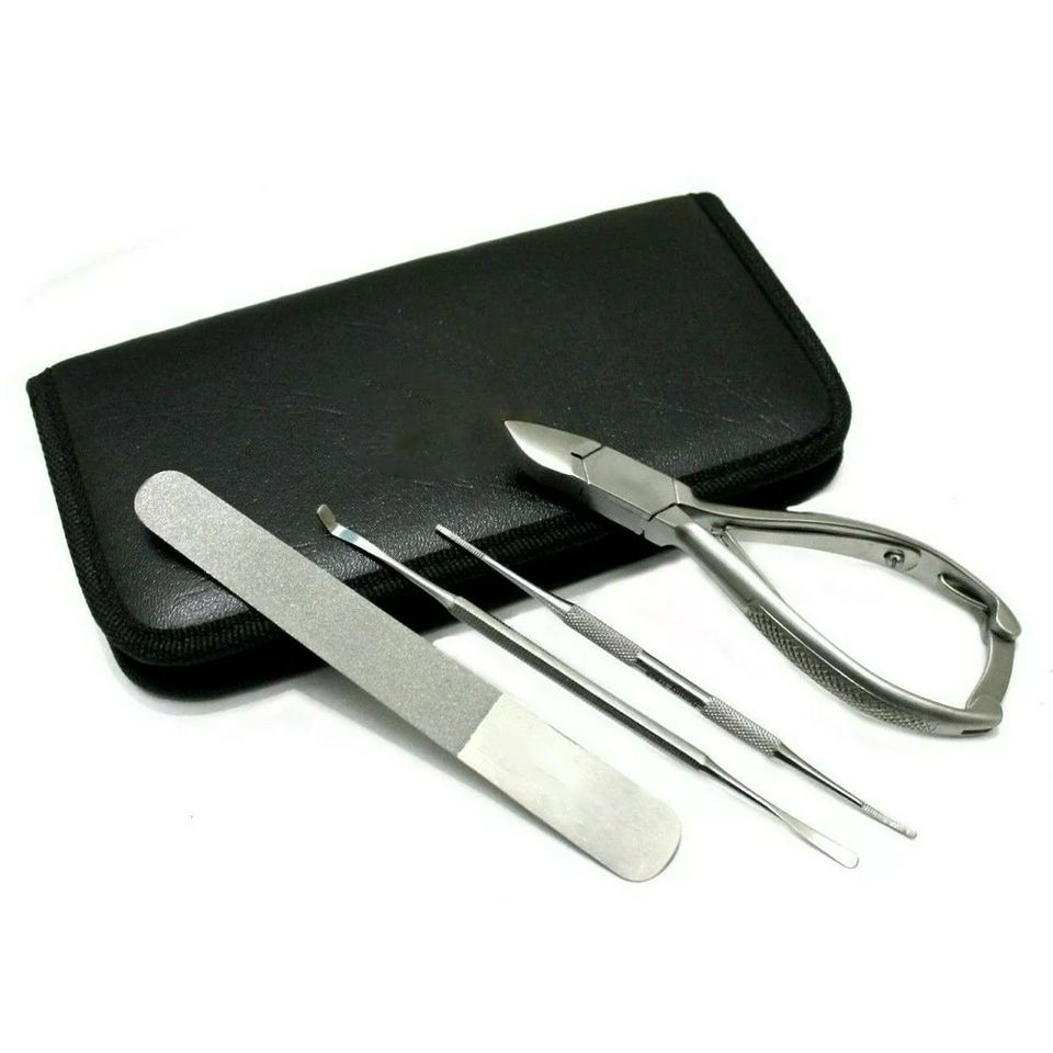 ชุดเครื่องมือทำเล็บเท้า 4 ชิ้น อุปกรณ์ดูแลเท้า ตะไบเล็บ กรรไกรตัดเล็บ สแตนเลสสตีล คุณภาพระดับมืออาชีพ ทนทาน ปากกรรไกรกว้าง