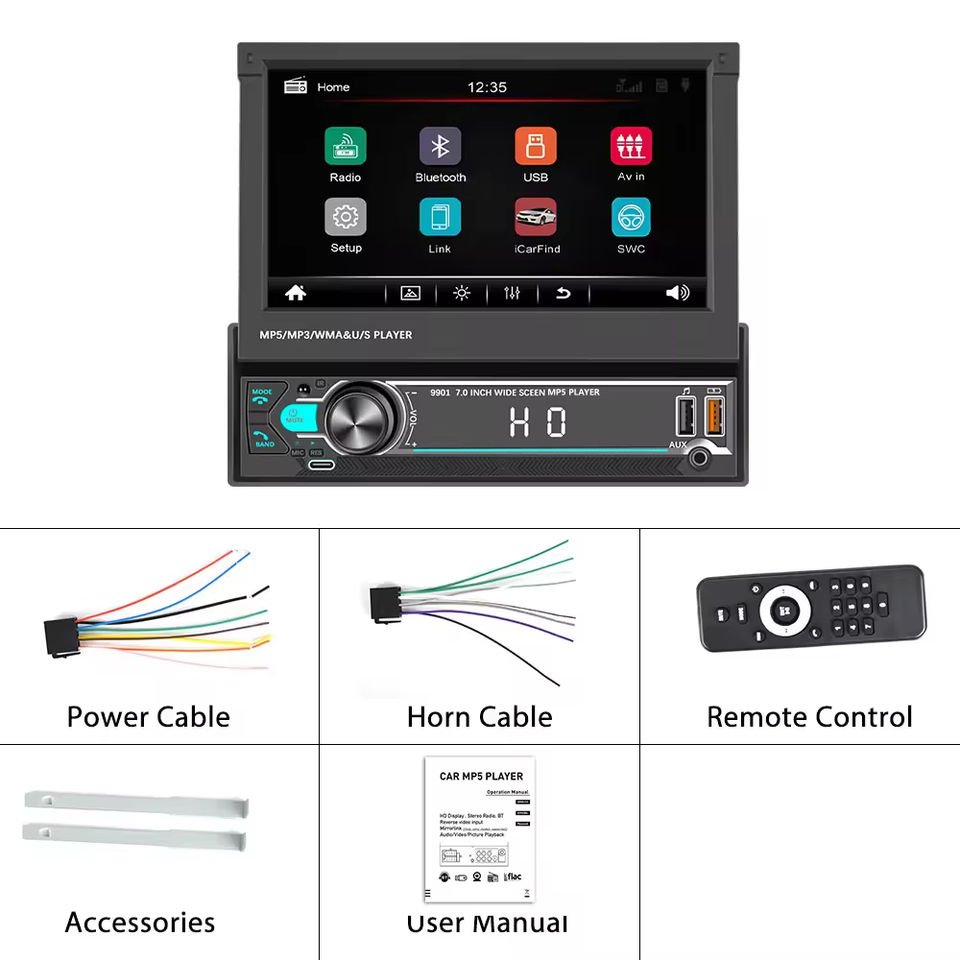 วิทยุติดรถยนต์ Podofo 1Din แบบยืดหดได้ ขนาด 7 นิ้ว MP5 ช่อง USB คู่ ชาร์จเร็ว บลูทูธ FM อีควอไลเซอร์ ไฟ LED สีสันสดใส ขายส่ง