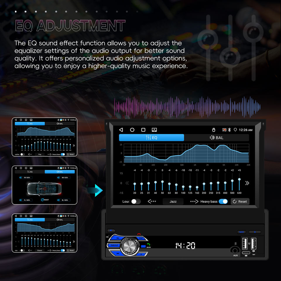 Podofo 7'' 1 Din Autoradio Android Car Radio 4+64G Retractable Touch Screen Wireless Carplay & Android Auto BT/WIFI/GPS USB