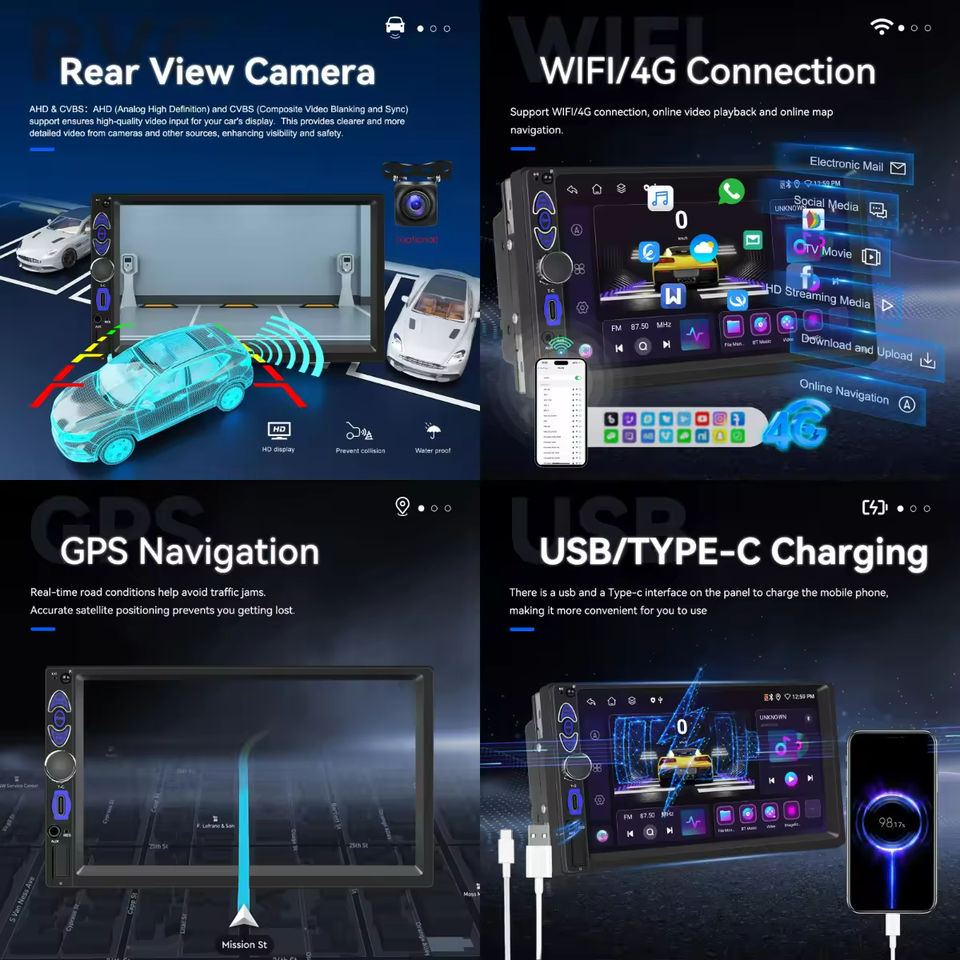 GPS, สเตอริโอ, OBD2, คาร์เพลย์, Android Auto, ภาพในภาพ, ไมโครโฟนในตัว, หน้าจอแยก, File Manager, ควบคุมพวงมาลัยรถยนต์, ลำโพงในตัวฟังก์ชัน