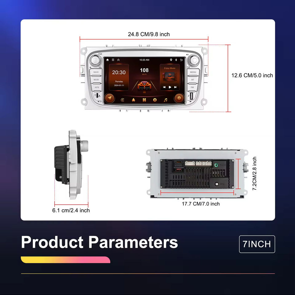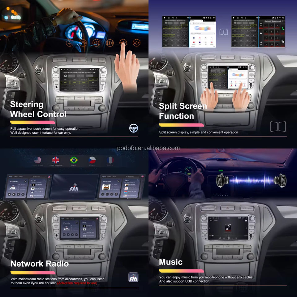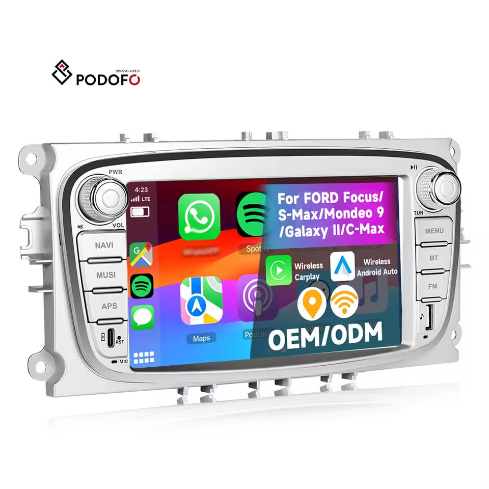 วิทยุติดรถยนต์ Podofo 7 นิ้ว ระบบแอนดรอยด์ สำหรับรถยนต์ฟอร์ด โฟกัส เอส-แม็กซ์ มอนเดโอ 9 กาแล็กซี่ 2 ซี-แม็กซ์ หน่วยความจำ 2+64 กิกะไบต์ รองรับ Wireless Carplay/Android Auto พร้อมระบบ GPS/WiFi สเตอริโอ