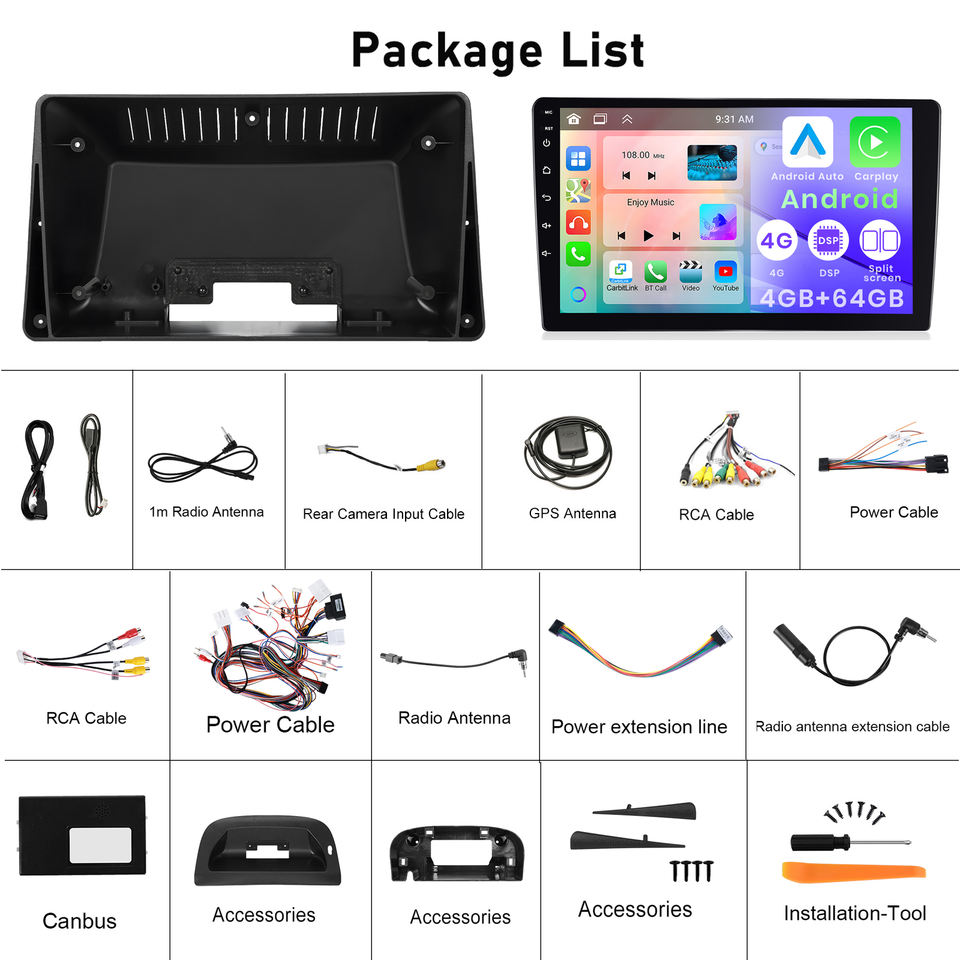 GPS, Stereo, HANDSFREE, Remote Control, Amplifier, DSP, CarPlay, DVB+, Mirror Link, android auto, Built-In Microphone, Split Screen, File Manager, Car Steering Wheel ControlFunction
