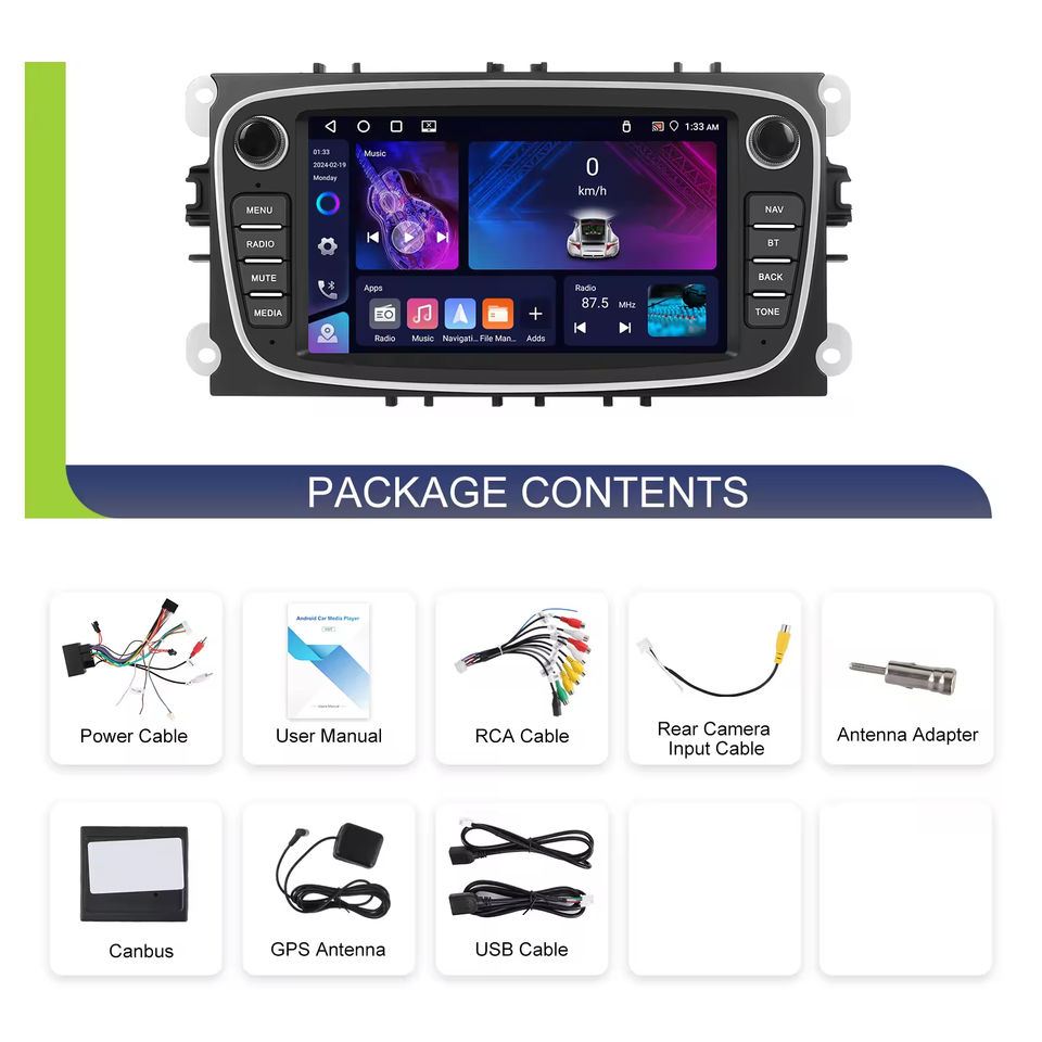 วิทยุติดรถยนต์ Podofo AI DSP หน้าจอ IPS 7 นิ้ว 4+64GB ระบบ Android รองรับ Wireless CarPlay และ Android Auto สำหรับรถยนต์ Ford Focus II/S-Max/Mondeo 9