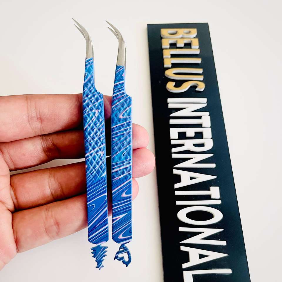 Pointed Tip Stainless Steel Eyelash Extension Tweezers Blue Paper Coated Light Tension Lash Tweezers with Box Packaging