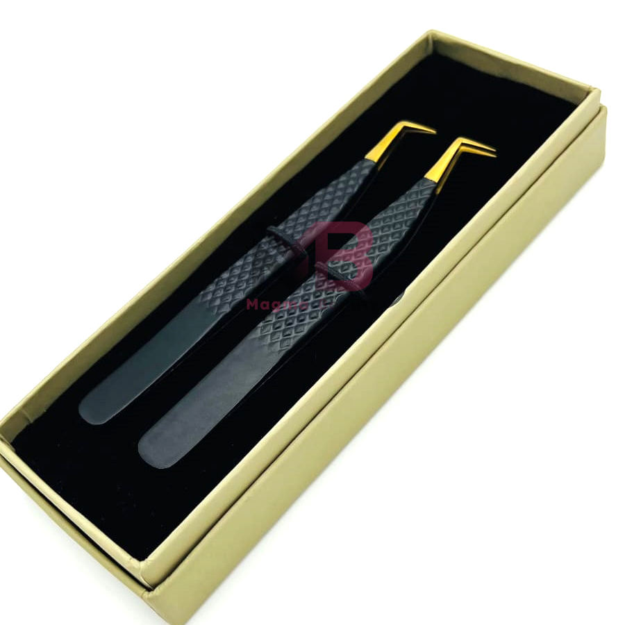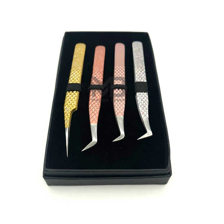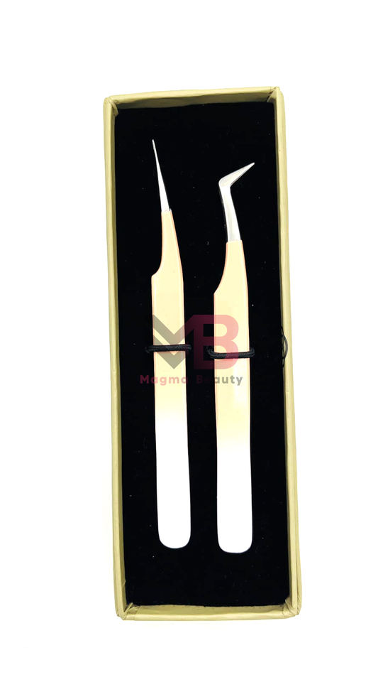 Pointed Tip Stainless Steel Professional Eyelash Tweezers with Comfortable Handle & Non-Slip Grip for Eyelash Extensions