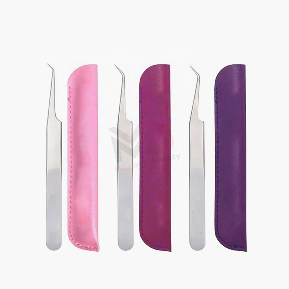 แหนบปลายแหลมสแตนเลสสตีลสำหรับต่อขนตาแบบมืออาชีพ พร้อมด้ามจับที่สะดวกสบาย