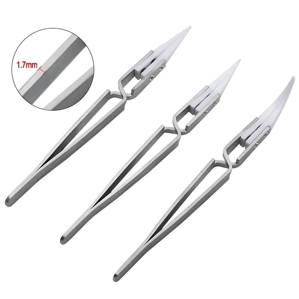 แหนบปลายแหลมสำหรับพื้นที่แคบและส่วนประกอบที่เปราะบางแหนบทนความร้อนสำหรับการบัดกรีและอุปกรณ์อิเล็กทรอนิกส์