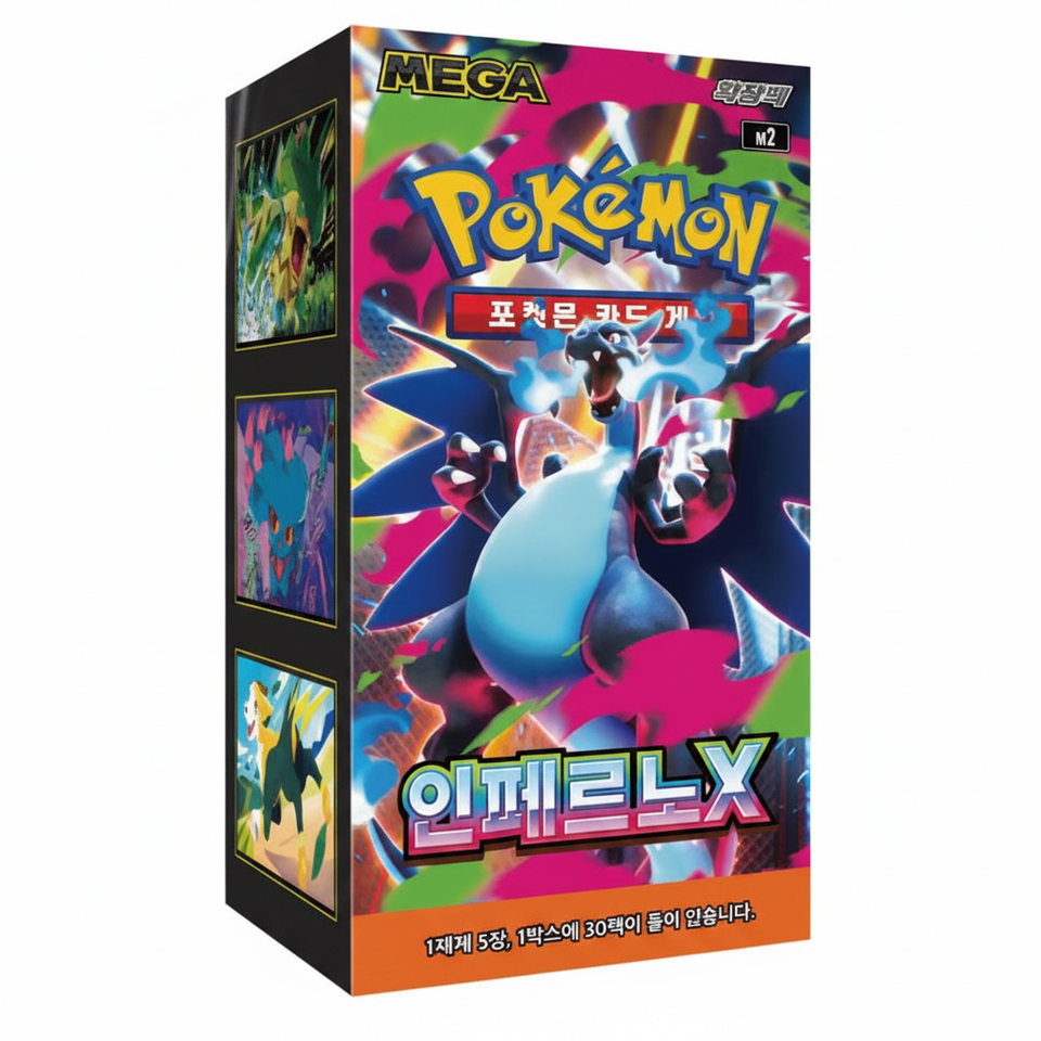 กล่องบูสเตอร์โปเกมอน "อินเฟอร์โน เอ็กซ์" เมก้า บูสเตอร์ บ็อกซ์ | ซีลโรงงานอยู่ทั้งหมดในกล่อง | เวอร์ชั่นภาษาเกาหลี | ของแท้ ซีลปิดอย่างดี | ดีเอพี