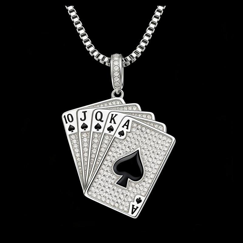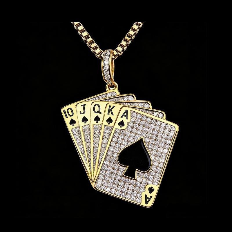 จี้โป๊กเกอร์ดีไซน์หรูหรา สไตล์ฮิปฮอป ประดับเพชรและเคลือบเงา สำหรับเด็ก
