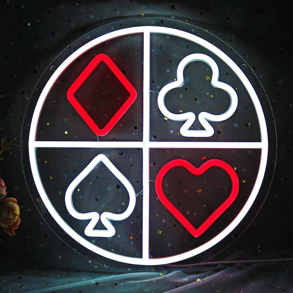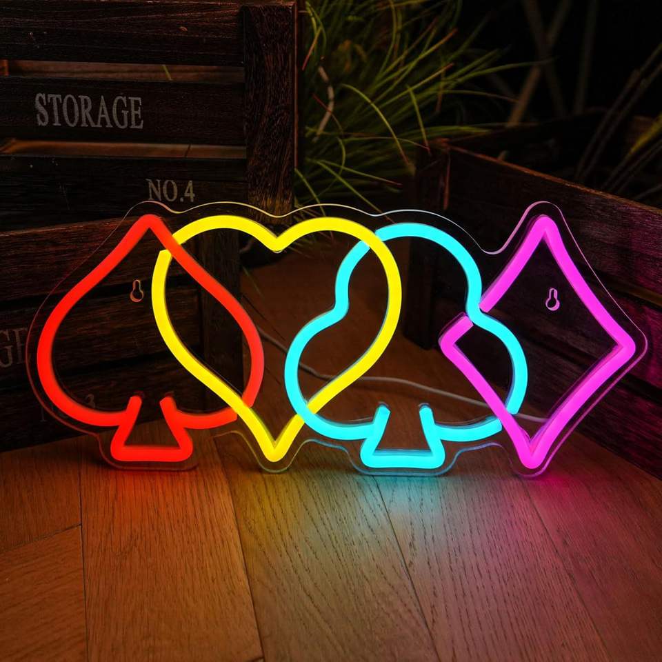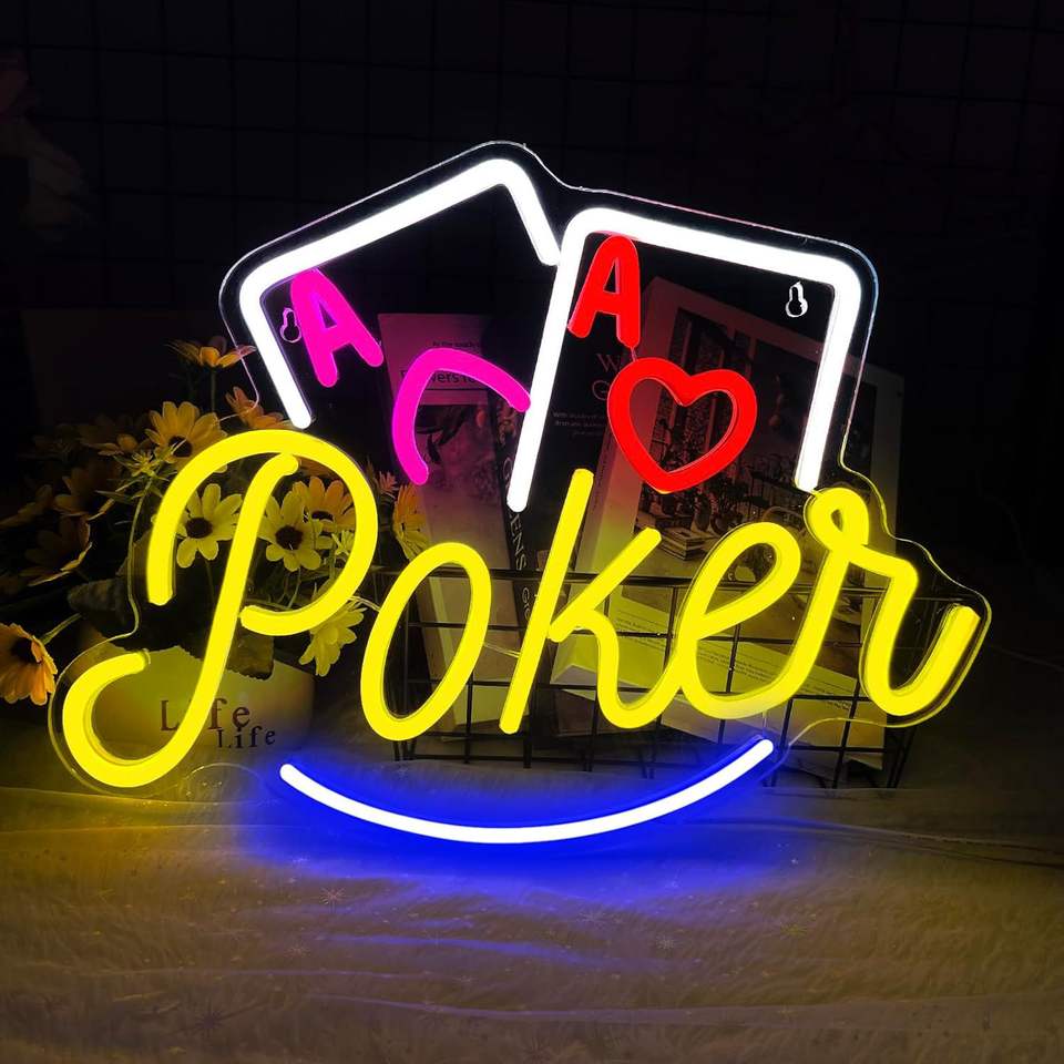 เกมโป๊กเกอร์ poken หมากรุกและการ์ดไฟนีออนตกแต่งศิลปะตัวอักษรเรืองแสงภาพวาด LED อะคริลิค