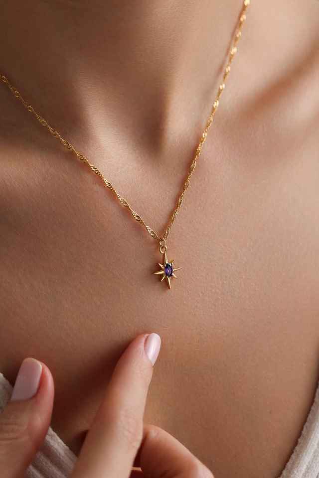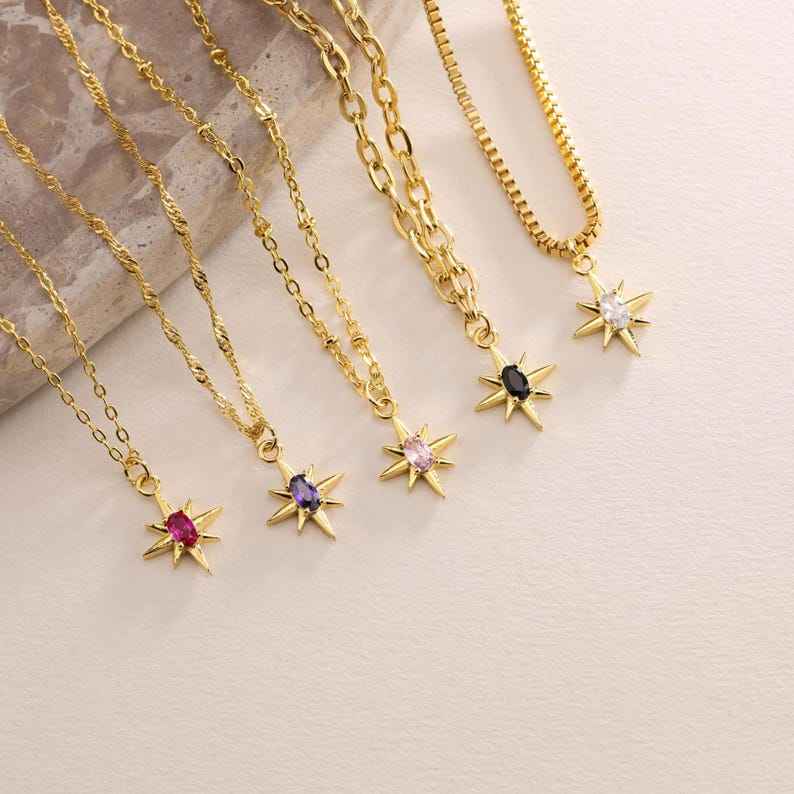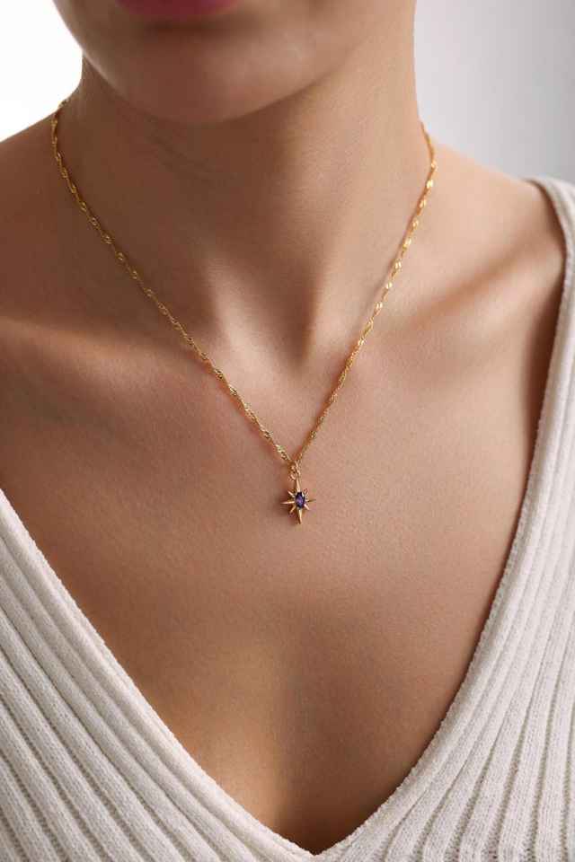 สร้อยคอโพลาริส ชุบทอง จี้รูปดาวเหนือประดับเพชร เครื่องประดับสวรรค์ สร้อยคอเรียบง่ายหลากสี ของขวัญสุดหรูสำหรับผู้หญิง