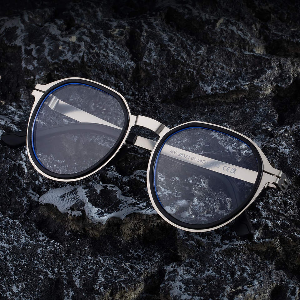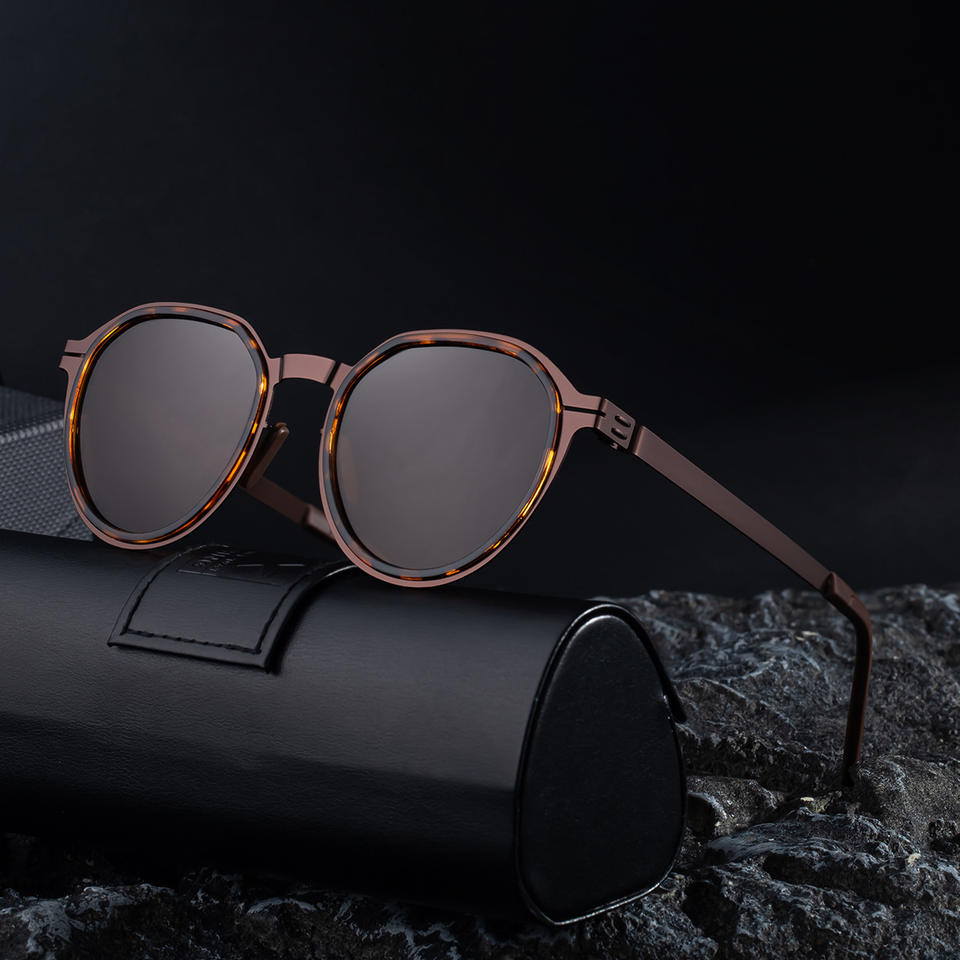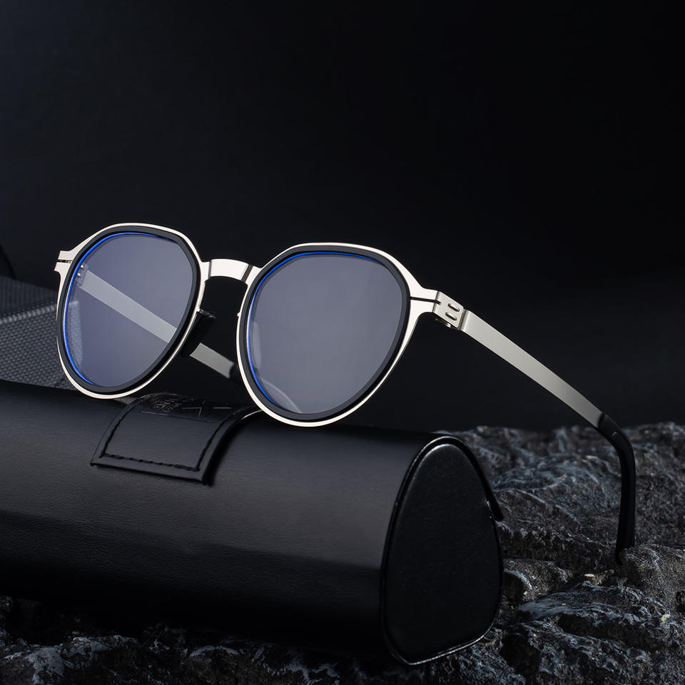 แว่นกันแดดโพลาไรซ์สำหรับผู้ชายกรอบกลม UV400 ป้องกันแสงสะท้อนเลนส์พีซีสีดำกรอบพลาสติกโลหะประเภท 3 แว่นกันแดด My-98323