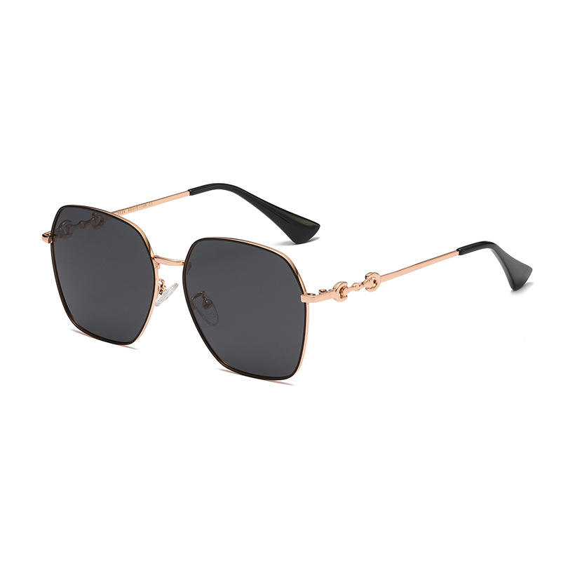 แว่นกันแดดโพลาไรซ์สำหรับผู้หญิงกรอบทองเลนส์สีดำป้องกันรังสียูวี 400 คลาส 2 บังแดดเดินทางแฟชั่นขับรถ