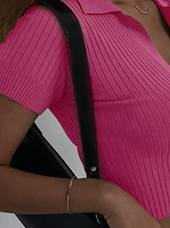 ชื่อ:เสื้อยืดเอวลอยแต่งโครงสไตล์โปโลคอวี