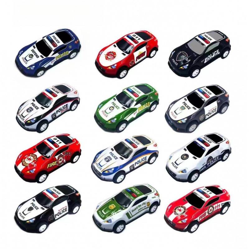 รถตำรวจนำดีบุก6.8ซม. สำหรับเด็กรถดึงกลับด้านเป็นโลหะผสมมีหลายรูปแบบรถของเล่นแรงเสียดทาน B2BSource สำหรับเด็กผู้ชาย