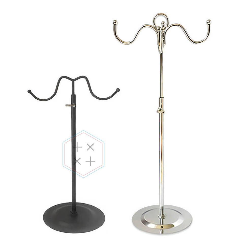 ขาตั้งโลหะสองหัวสำหรับโชว์กระเป๋าดีไซน์เรียบง่ายสำหรับร้านค้าปลีกชั้นวางของในเชิงพาณิชย์