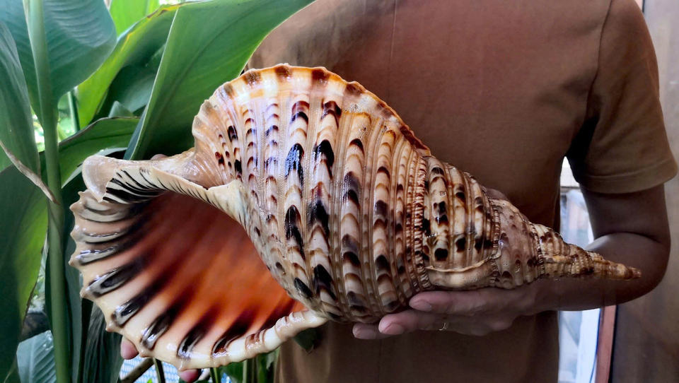 เปลือกหอยทากไทรทันขนาดใหญ่ขัดเงาสำหรับงานฝีมือเปลือกหอยขนาดใหญ่สไตล์สัตว์เวียดนามการตกแต่งทรัมเป็ตทรัมเป็ตแอมโมไนต์ขนาดใหญ่อย่างเป็นธรรมชาติ