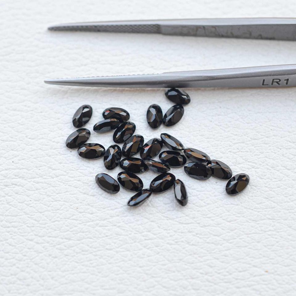 หินสปินเนลสีดำขัดเงาขนาด3x4มม. พลอยเจียระไนทรงวงรีธรรมชาติแบบหลวมสำหรับการเก็บเครื่องประดับแบบทำมืออัญมณีราคาไม่แพง