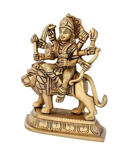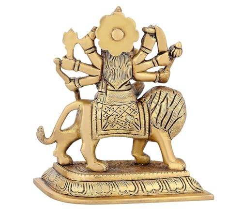 รูปปั้นทองเหลืองขัดเงา Durga Ma Idol Mata Mata Mata Mura Mura Murti รูปเสือ astadhatu รูปปั้นทองเหลืองพิมพ์ลายสไตล์ทางศาสนา