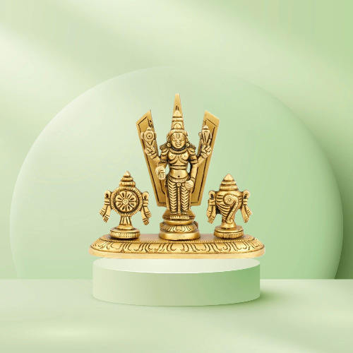 ตุ๊กตาทองเหลืองขัดเงา shankh Chakra Namah showpiece ตกแต่งบ้านกับ tilak shankh Chakra in Lay