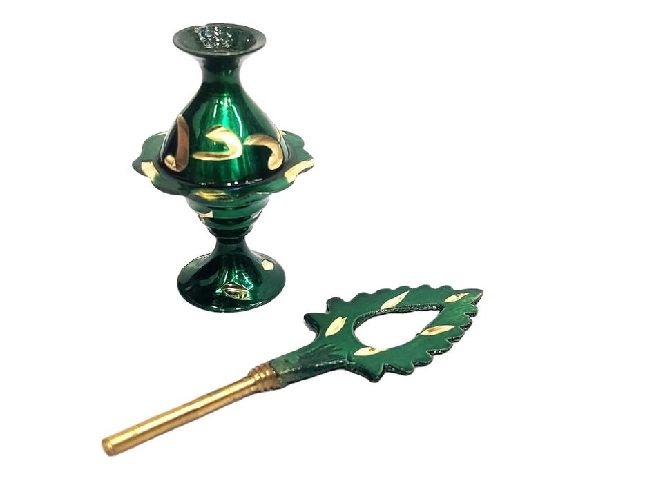 Surma Dani ทองเหลืองขัดเงามีเอกลักษณ์สีเขียวแบบดั้งเดิมสำหรับตกแต่งและให้เป็นของขวัญ100กรัมสำหรับ Surma Powder surmedaani