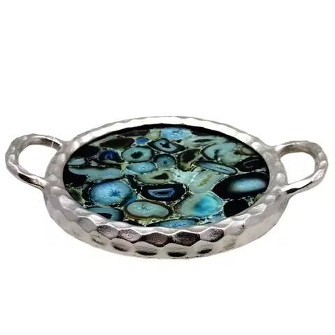 ถาดเสิร์ฟอาหารทำจากเรซินอลูมิเนียมขัดเงาพร้อมด้ามจับเป็นมิตรต่อสิ่งแวดล้อมสำหรับใช้ในบ้านโรงแรมและจัดเลี้ยงอาหาร