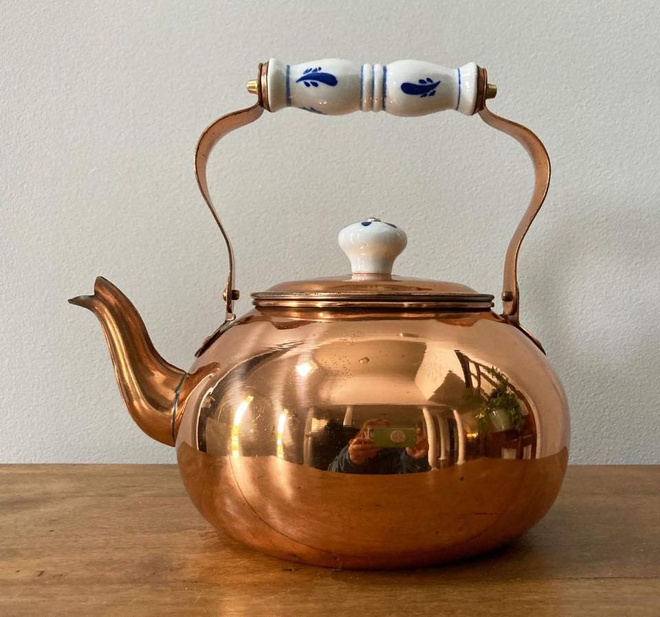 กาน้ำชาทองแดงขัดเงาพร้อมด้ามจับที่สะดวกสบายสำหรับใช้ในบ้าน โรงแรม ร้านอาหาร และร้านกาแฟ