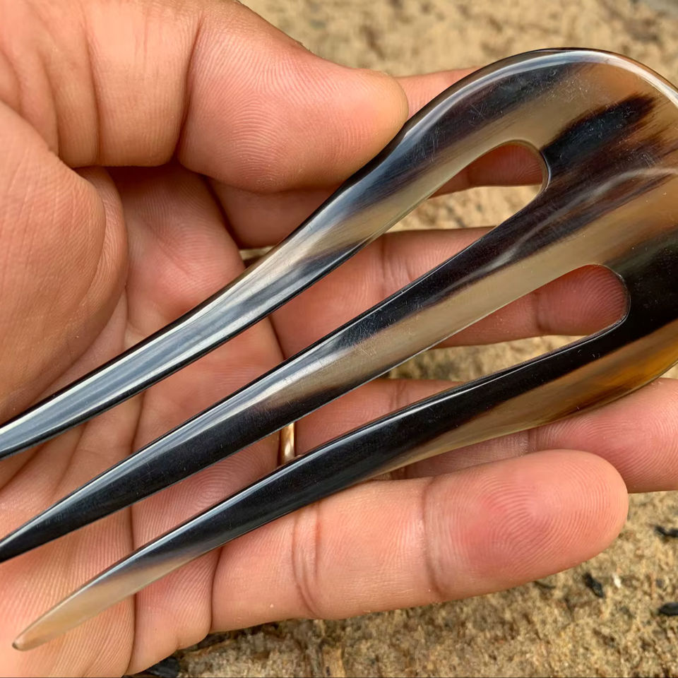 ปิ่นปักผมรูปเขาควายขัดเงาสำหรับผู้หญิงทำจากเขาวัวอุปกรณ์เสริมจากธรรมชาติ