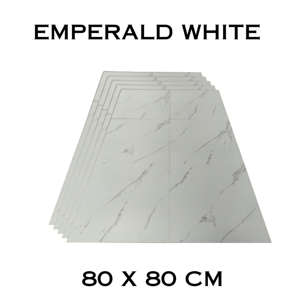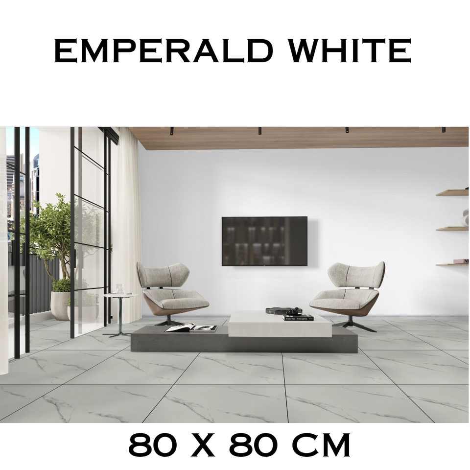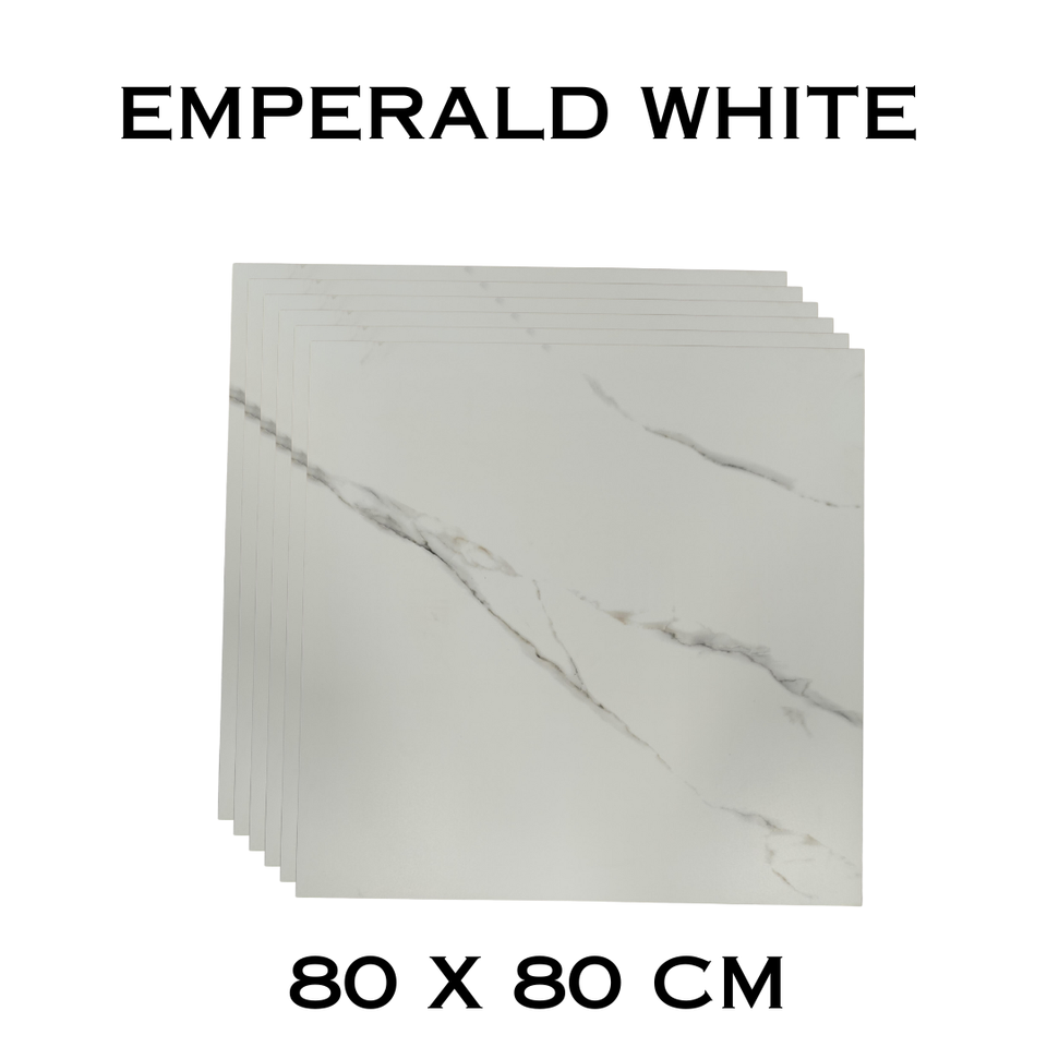 กระเบื้องพื้นพอร์ซเลนขัดเงาสีขาวมรกต80x80ซม. ทนทานกันรอยเปื้อนและทำความสะอาดง่ายผิวด้าน