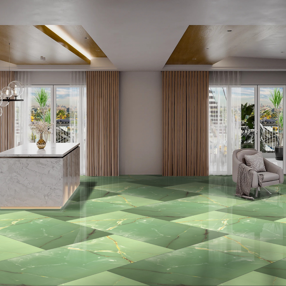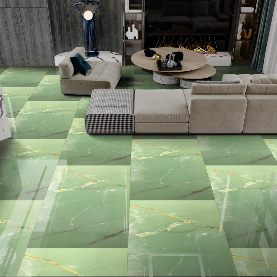 กระเบื้องปูพื้นพอร์ซเลนเคลือบเงา600X1200MM การตกแต่งภายในห้องนั่งเล่นหรูหราทันสมัยสำหรับพื้นผนังโรงแรมอัปเกรด