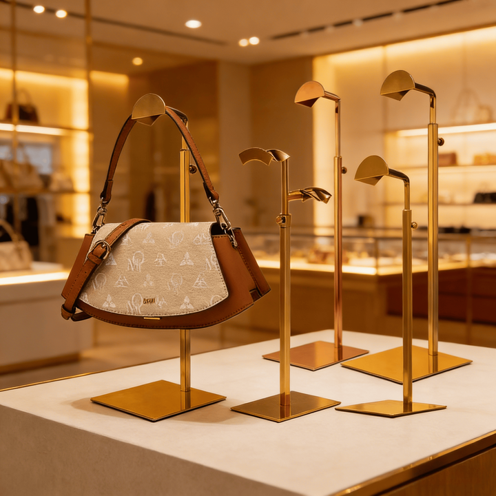 ชั้นวางกระเป๋าสแตนเลส ชั้นวางโชว์สินค้า ร้านขายกระเป๋าเฉพาะทาง ชั้นวางกระเป๋าในห้างสรรพสินค้า ชั้นวางโชว์เสื้อผ้า คุณภาพส่งออก