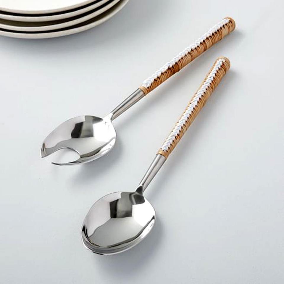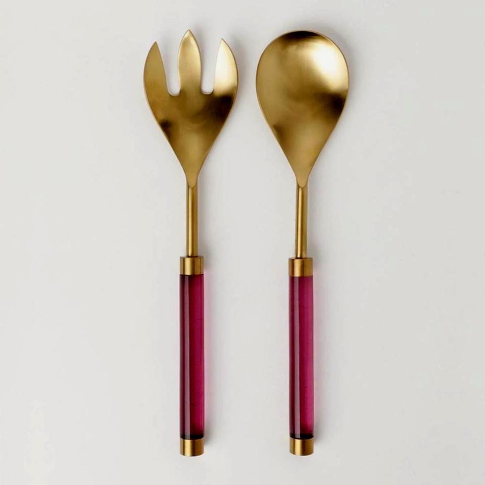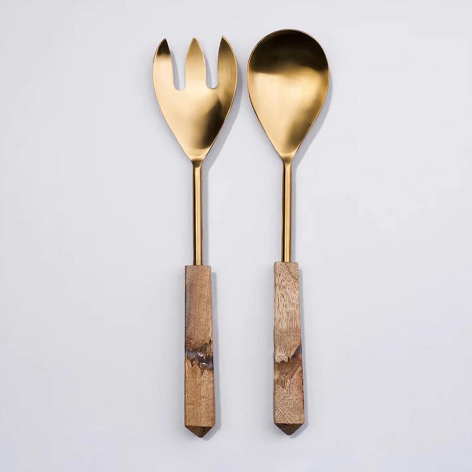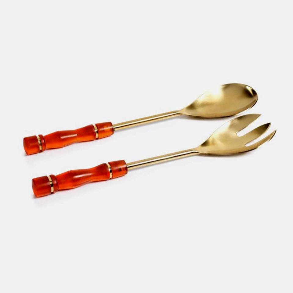 ชุดช้อนส้อมสำหรับสลัดทำจากทองเหลืองขัดเงามีด้ามจับทำจากเรซินอุปกรณ์รับประทานอาหารสำหรับงานแต่งงานโต๊ะเครื่องครัววัสดุโลหะทนทาน