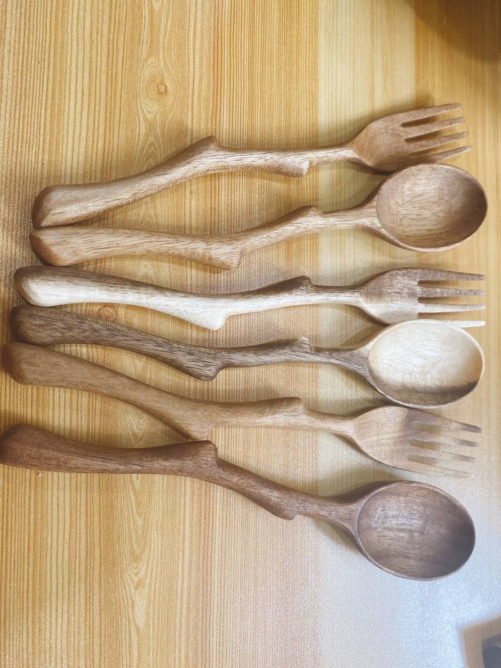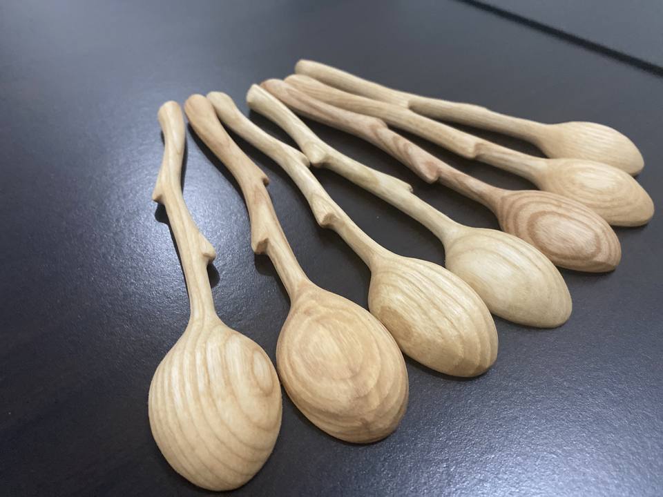 ช้อนไม้ขัดเงาทำมือผิวเรียบ