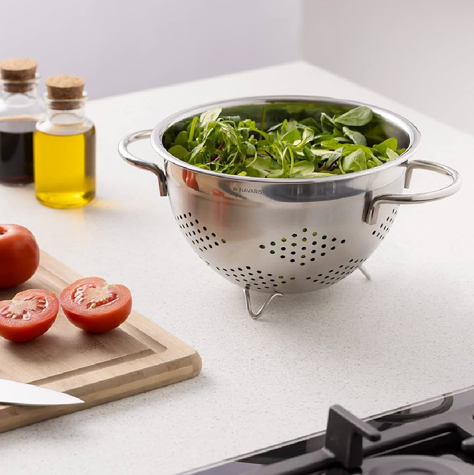 ตะกร้ากระชอนโลหะขัดเงาคุณภาพสูงสำหรับผักผลไม้และพาสต้าเครื่องครัวขายส่ง