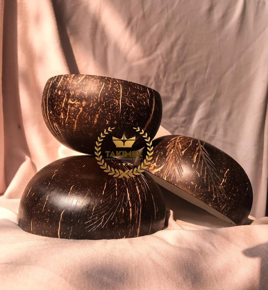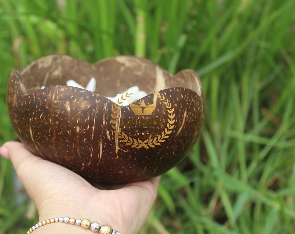 ชามมะพร้าวขนาดเล็กของแท้จากเวียดนามถ้วยโกโก้สลักแลคเกอร์เป็นมิตรต่อสิ่งแวดล้อม100% ธรรมชาติ