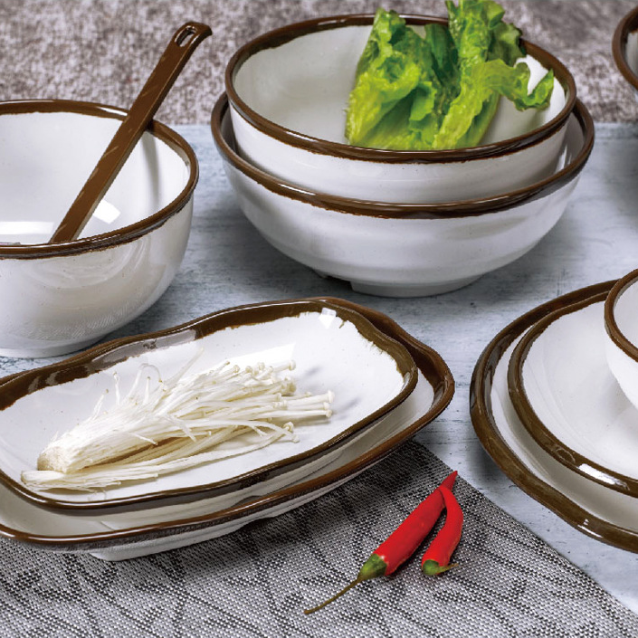ชุดชามสลัดก๋วยเตี๋ยวหมวกไม้ไผ่ขัดเงาเมลามีนกันลื่นเครื่องใช้บนโต๊ะอาหารปลอดภัยสำหรับร้านอาหารหรือครอบครัว
