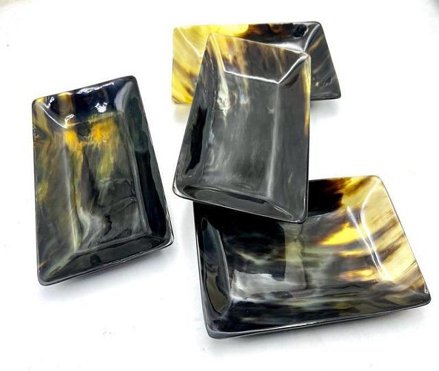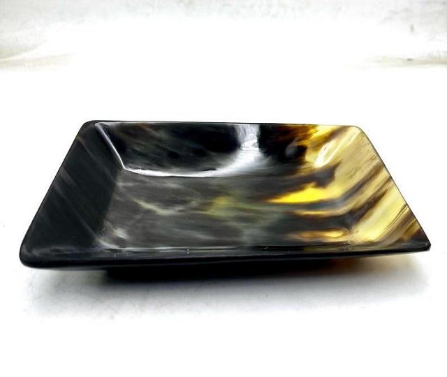 ถาดสี่เหลี่ยมเขาควายธรรมชาติขัดเงาสำหรับเสิร์ฟขนมการรับประทานอาหารและของตกแต่งบ้านงานทำมืออุปกรณ์ตกแต่งห้องครัวและโต๊ะ