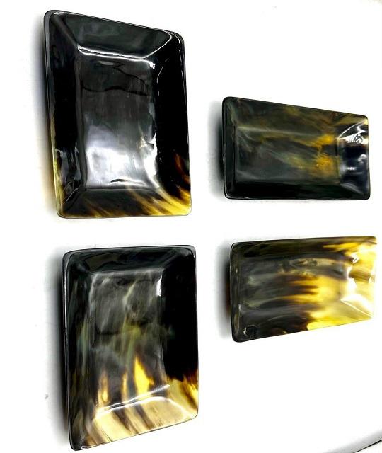 ถาดสี่เหลี่ยมเขาควายธรรมชาติขัดเงาสำหรับเสิร์ฟขนมการรับประทานอาหารและของตกแต่งบ้านงานทำมืออุปกรณ์ตกแต่งห้องครัวและโต๊ะ