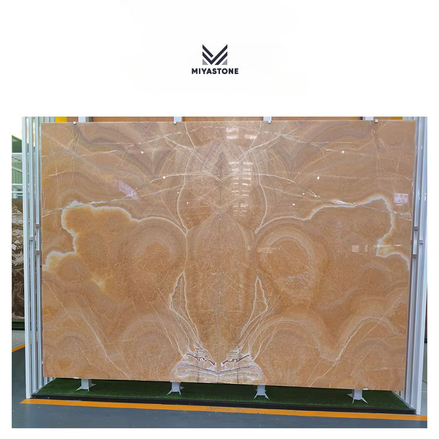 หินควอตซ์ธรรมชาติขัดเงาโอนิกซ์น้ำผึ้งคริสตัลสำหรับเคาน์เตอร์ห้องครัวและพื้นวิลล่ากระเบื้องหินอ่อนขัดเงา