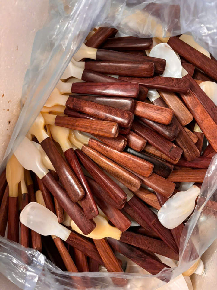 ถาดเปลือกหอยมุกธรรมชาติขัดเงา ขนาด 22 ซม. พร้อมฐานตั้ง จานใส่ไข่ปลาคาเวียร์ งานฝีมือประณีต ของขวัญสุดหรู ขายส่ง