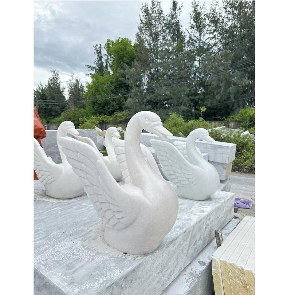 รูปปั้นหงส์ขาวกลางแจ้งพื้นผิวขัดเงาดีไซน์ตามสั่งผลิตจากเวียดนาม100% 1ปี