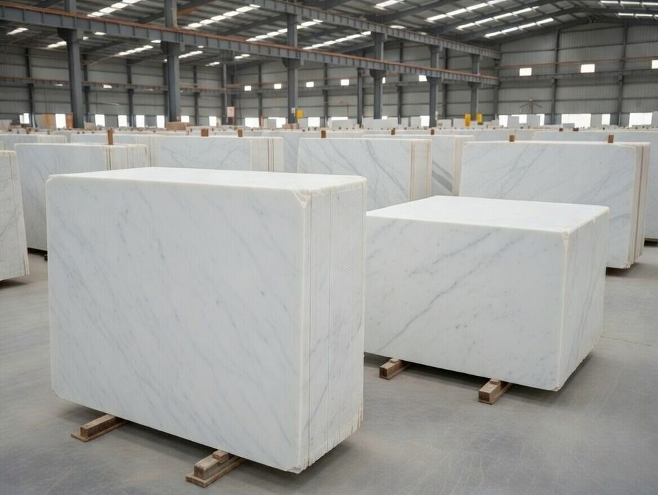 หินอ่อนสีขาวขัดเงาสำหรับทางเดินรถยนต์ หินธรรมชาติรูปทรงลูกบาศก์สำหรับตกแต่งพื้นภายในและภายนอกอย่างหรูหรา