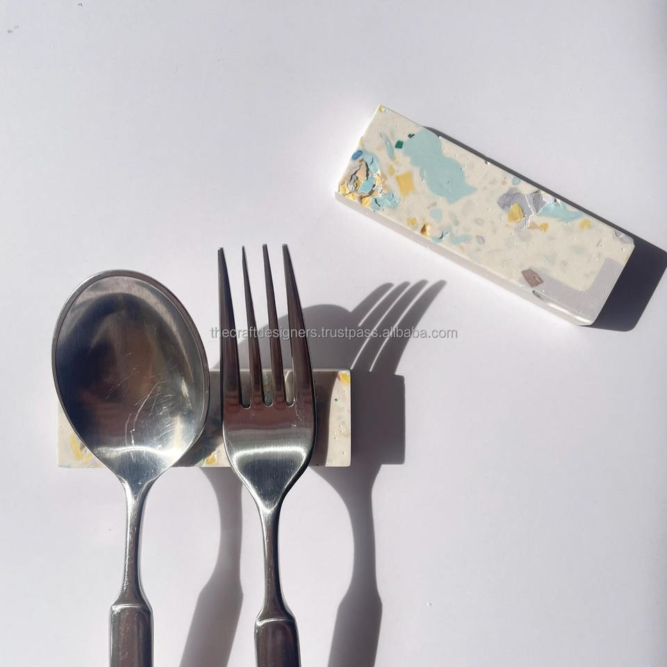ที่วางช้อนส้อมหินอ่อนสีขาวขัดเงาสำหรับตกแต่งโต๊ะรับประทานอาหารที่ทันสมัยและออกแบบตกแต่งภายในร้านอาหาร