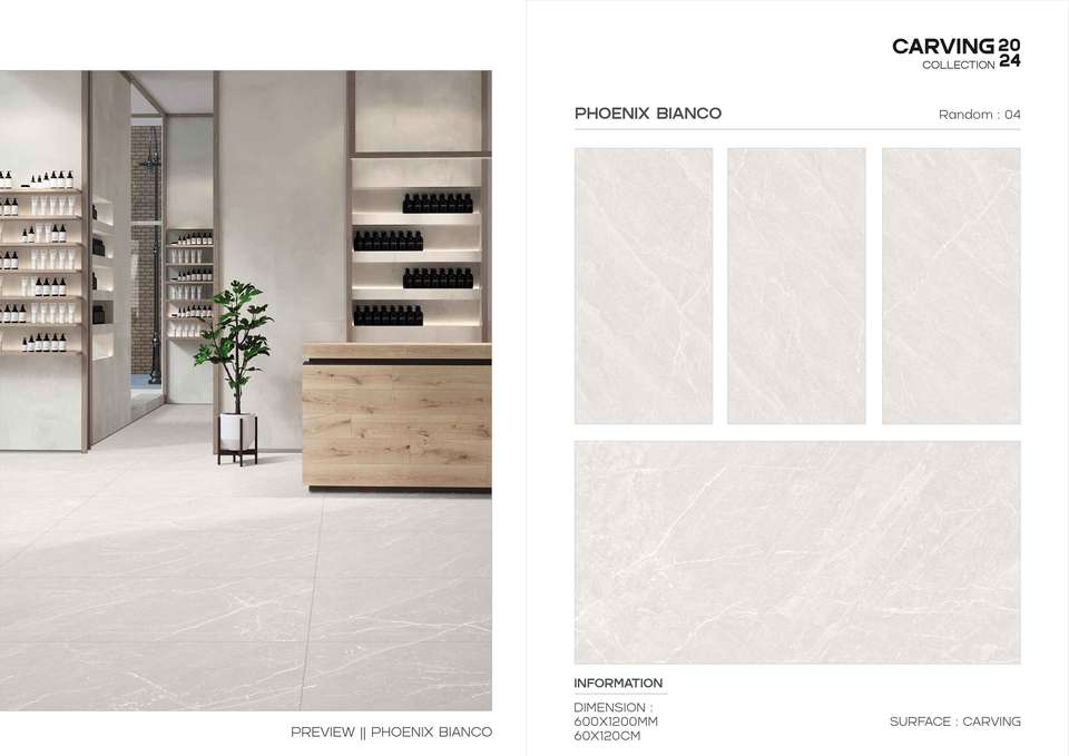 กระเบื้องพอร์ซเลนเคลือบเงาขัดมันพร้อมลวดลายแกะสลักอย่างมีศิลปะ เหมาะสำหรับปูพื้นและผนังในพื้นที่กว้างในตกแต่งภายในสไตล์โมเดิร์นที่หรูหรา