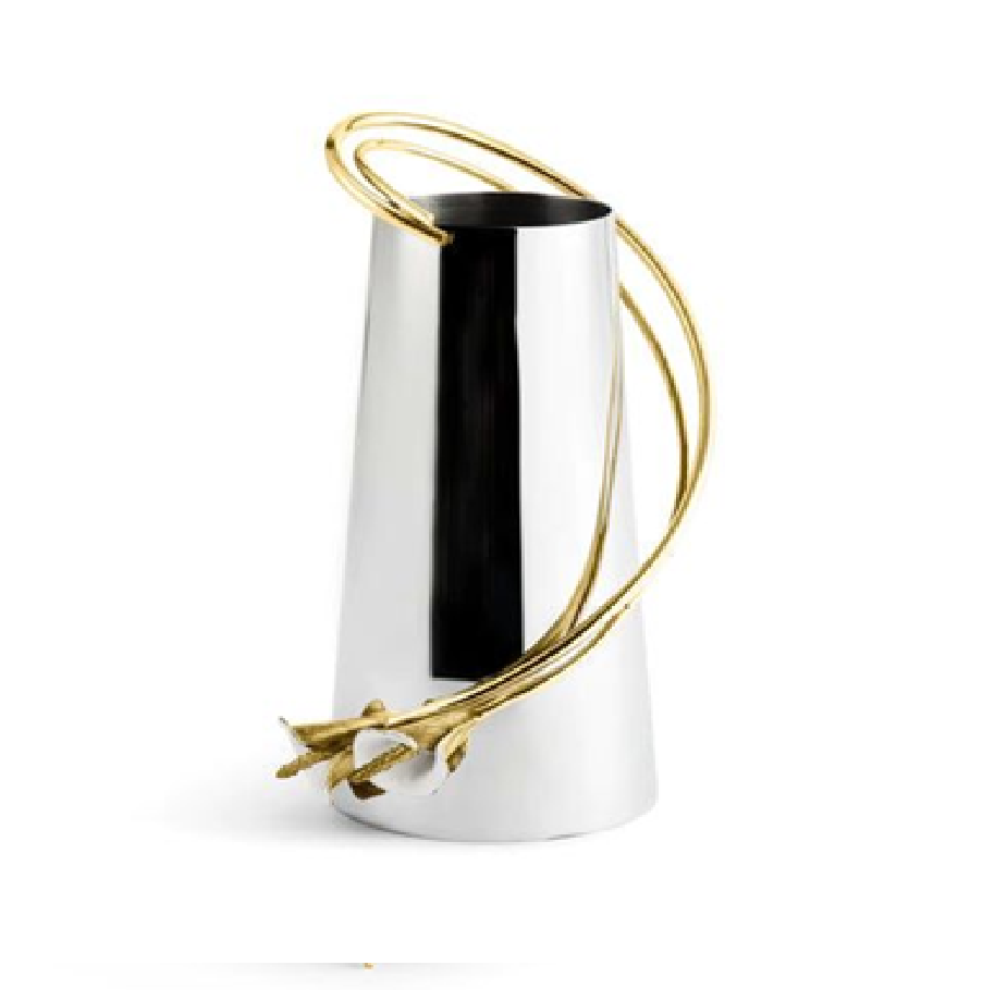 แจกันทรงบานสีเงินขัดเงา วางอยู่บนฐานกิ่งแมกโนเลียสีทองที่ประณีต มีจำหน่ายในราคาขายส่ง