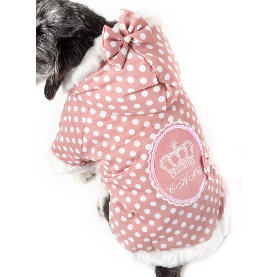 เสื้อสเวตเตอร์มีฮู้ดสำหรับสัตว์เลี้ยงลายจุดโบว์โบว์ลายจุดพร้อมรายละเอียดมีโบว์เก๋ไก๋