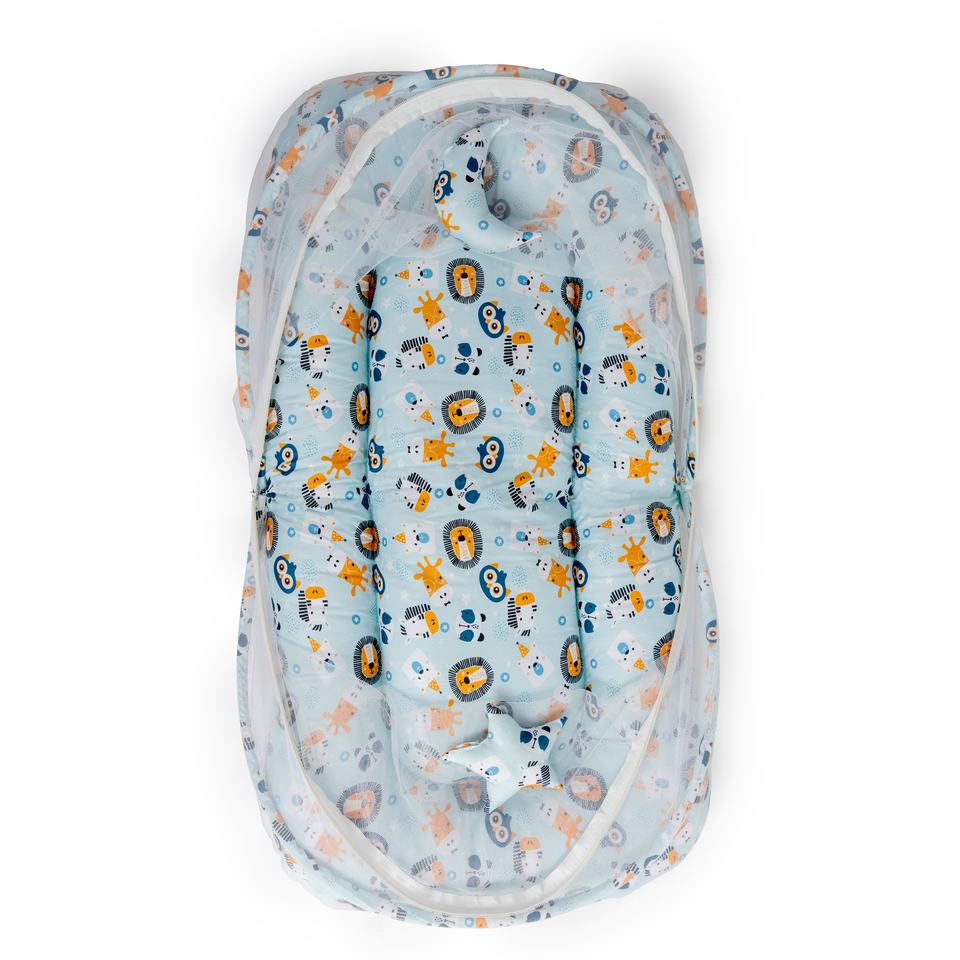 ชุดเครื่องนอนผ้าฝ้ายลายจุดสำหรับเด็กชุดมุ้งกันยุงพร้อมของเล่นแบบห้อยลายสิงโตสีน้ำเงิน